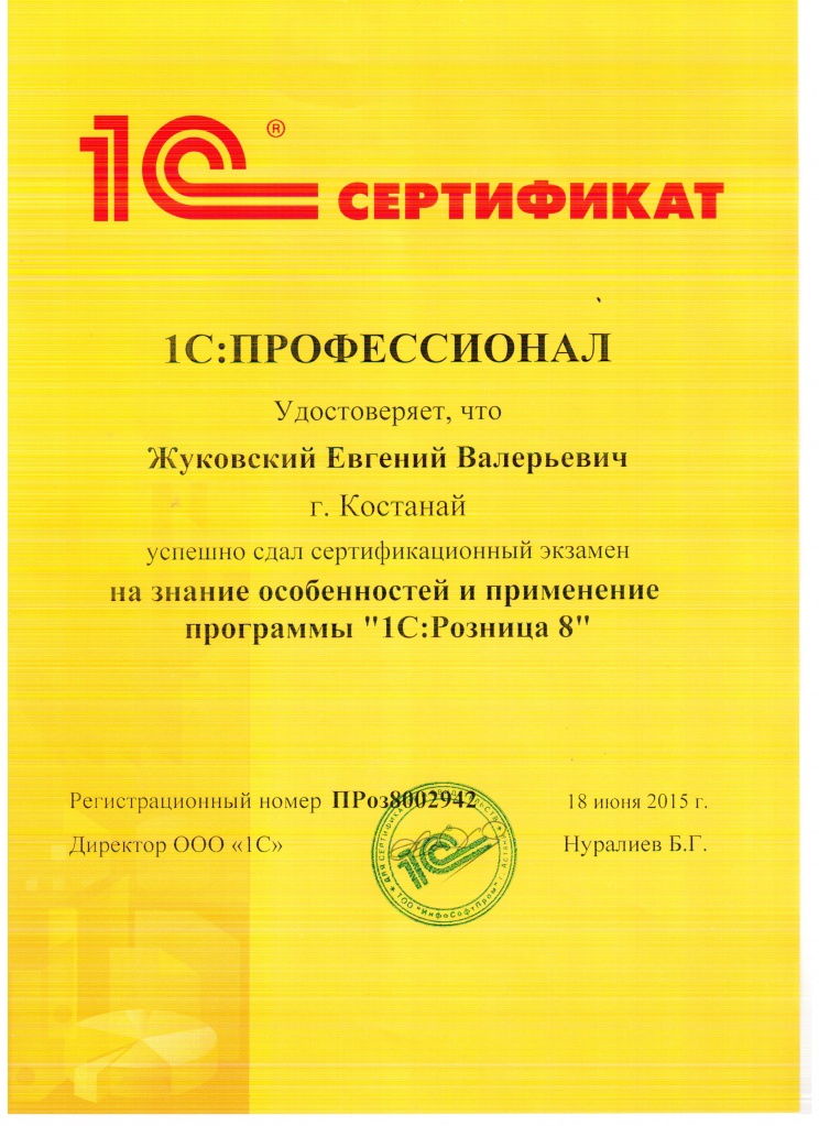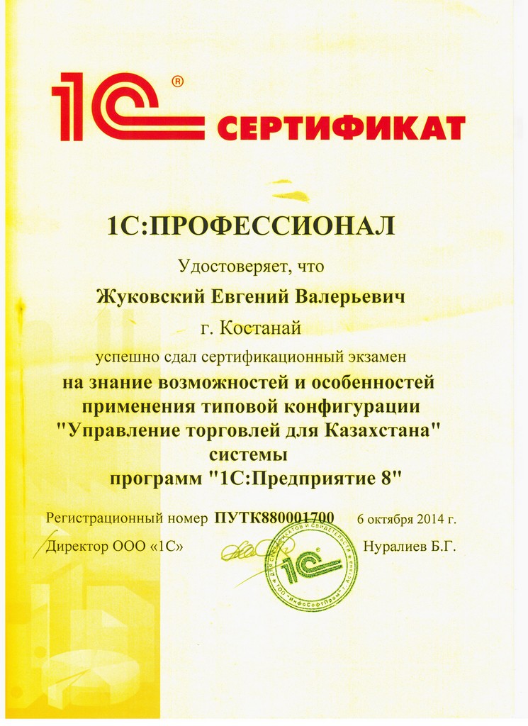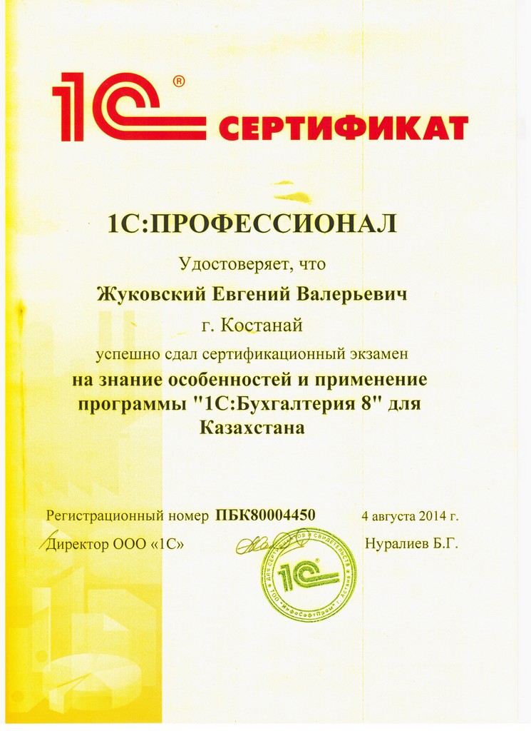 "1С:Бухгалтерия 8" для Казахстана, Жуковский Евгений