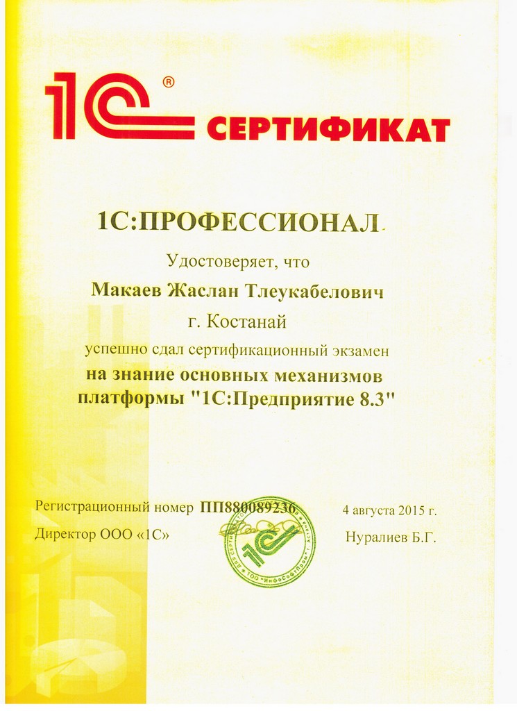 Платформа "1С:Предприятие 8.3", Макаев Жаслан