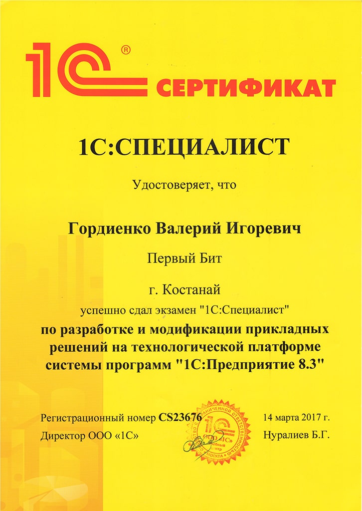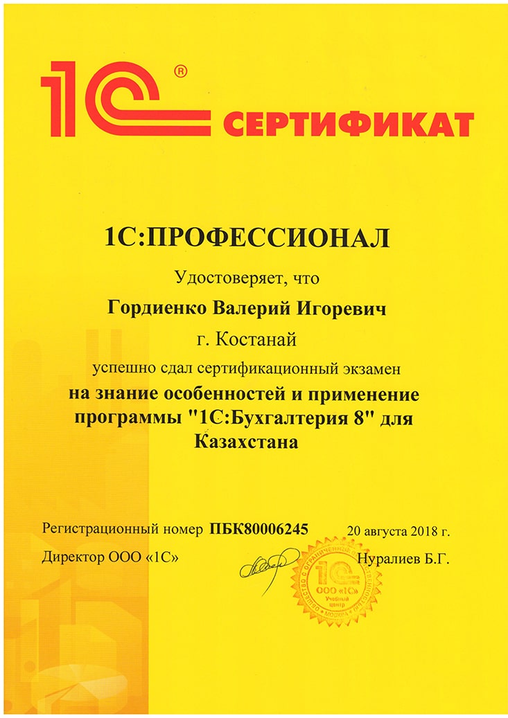 "1С:Бухгалтерия 8" для Казахстана, Гордиенко Валерий