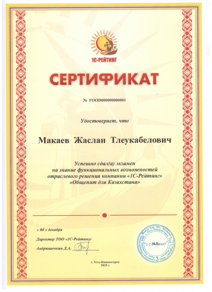 1С-Рейтинг: Общепит для Казахстана, Макаев Жаслан