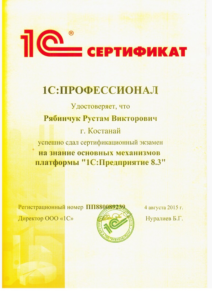 Платформа "1С:Предприятие 8.3", Рябинчук Рустам