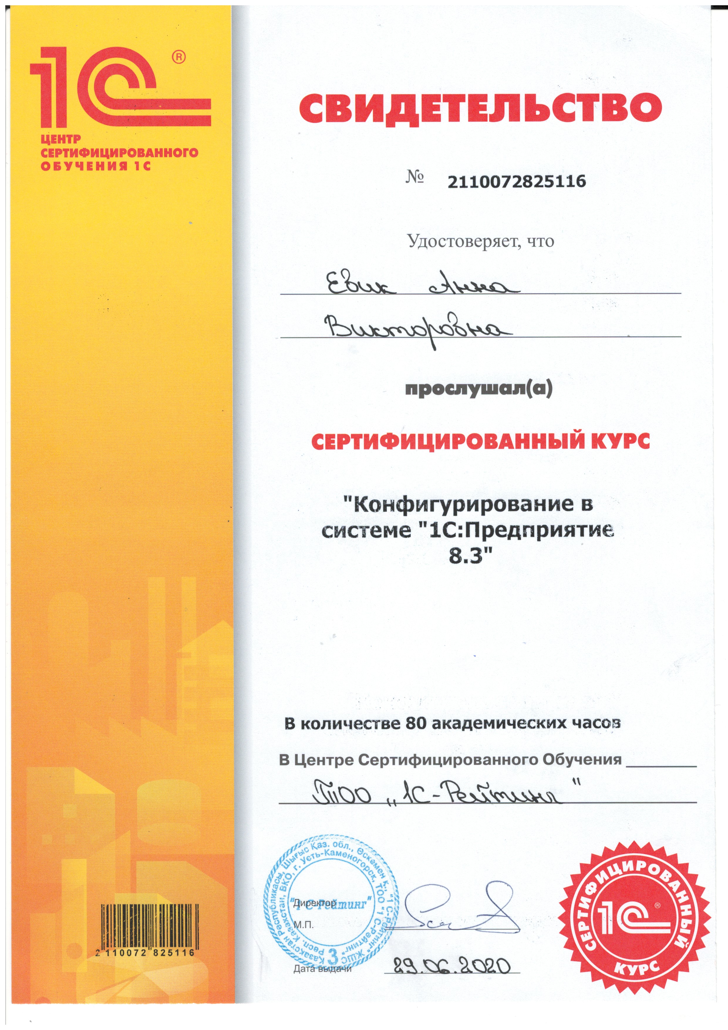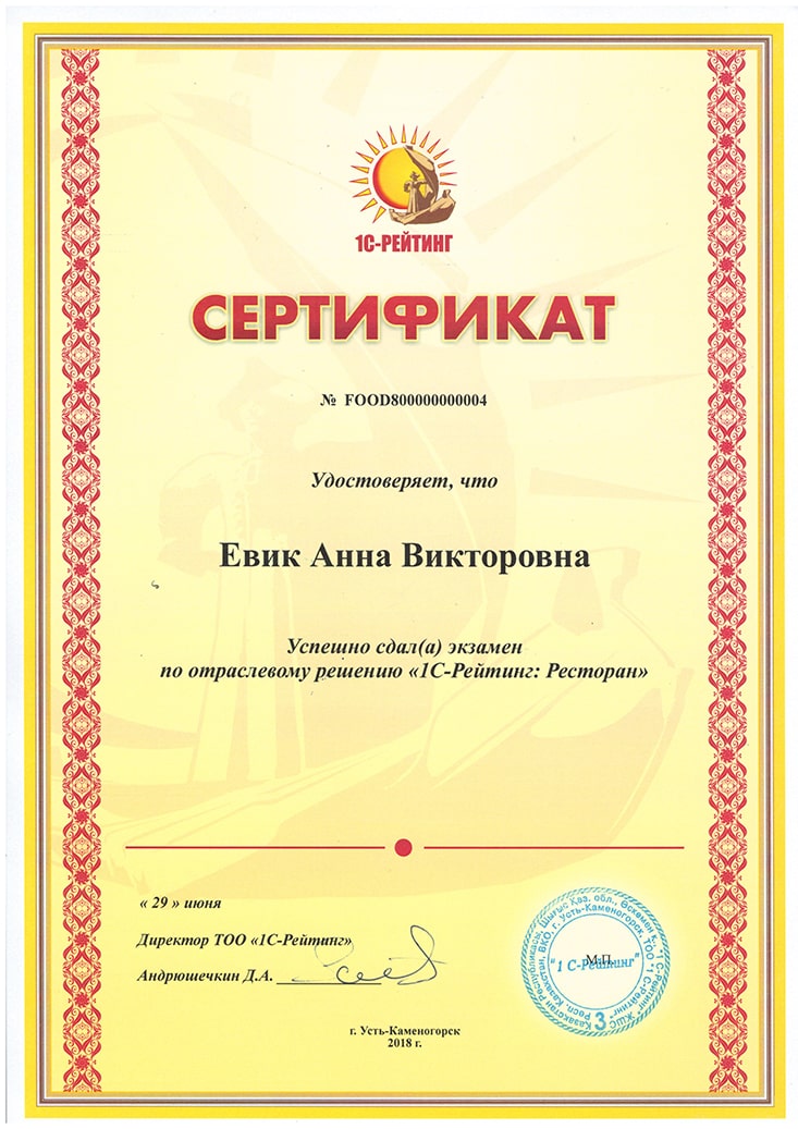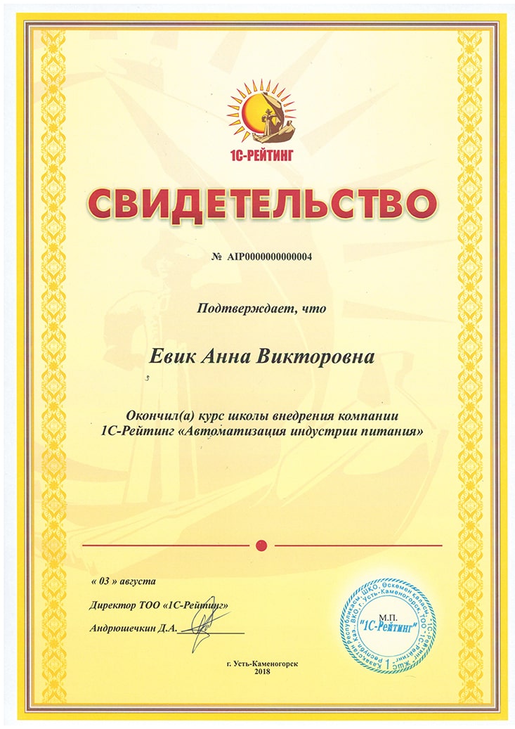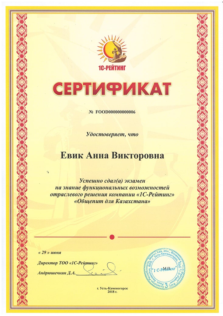 1С-Рейтинг: Общепит для Казахстана, Евик Анна