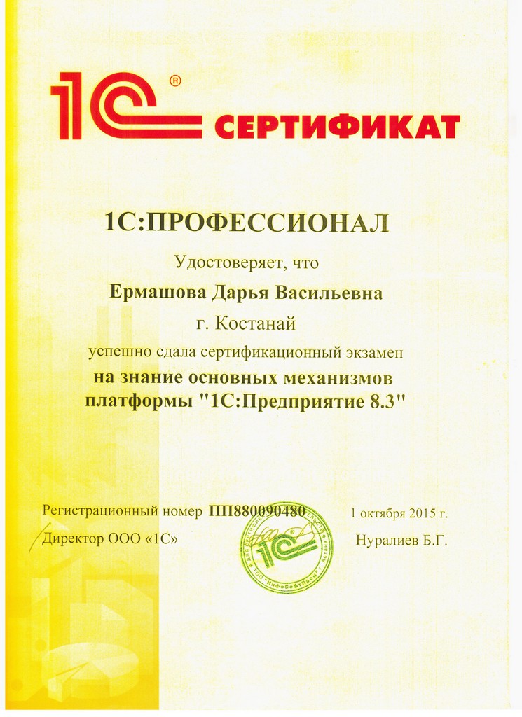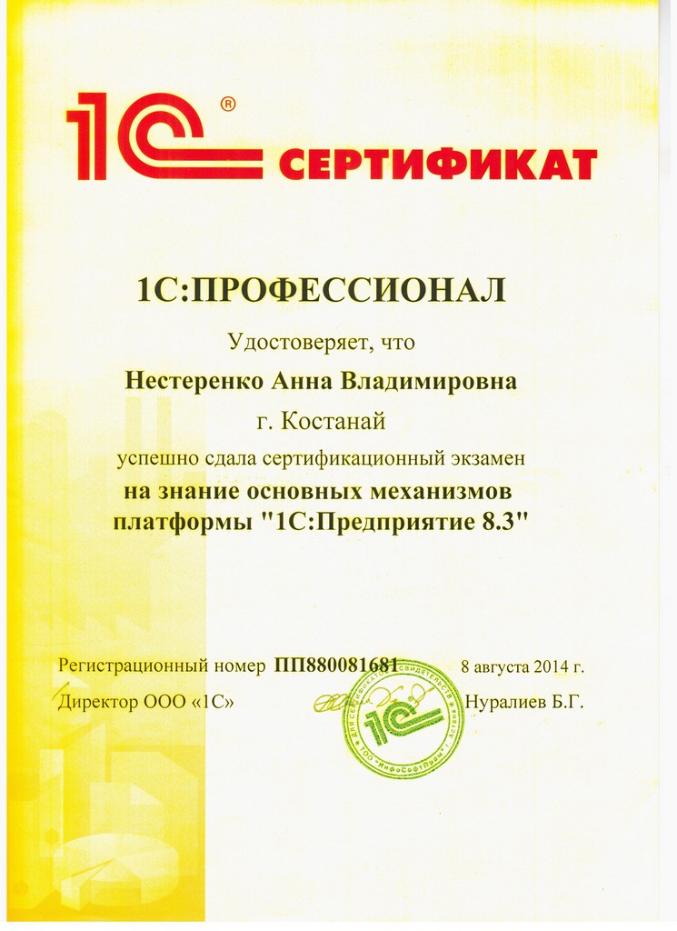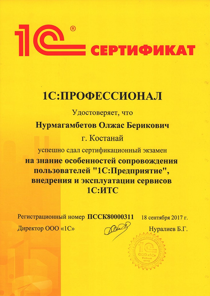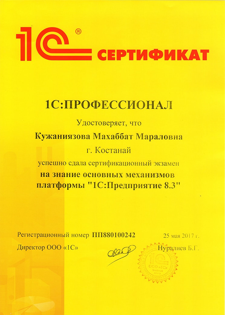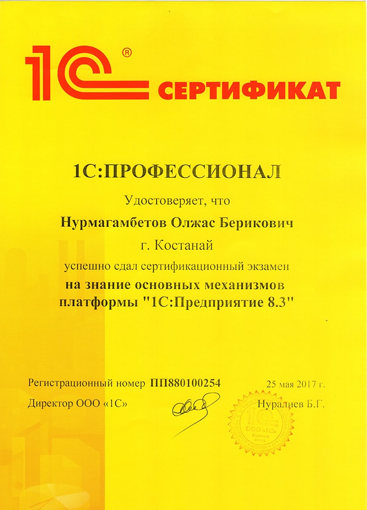 Платформа "1С:Предприятие 8.3", Нурмагамбетов Олжас