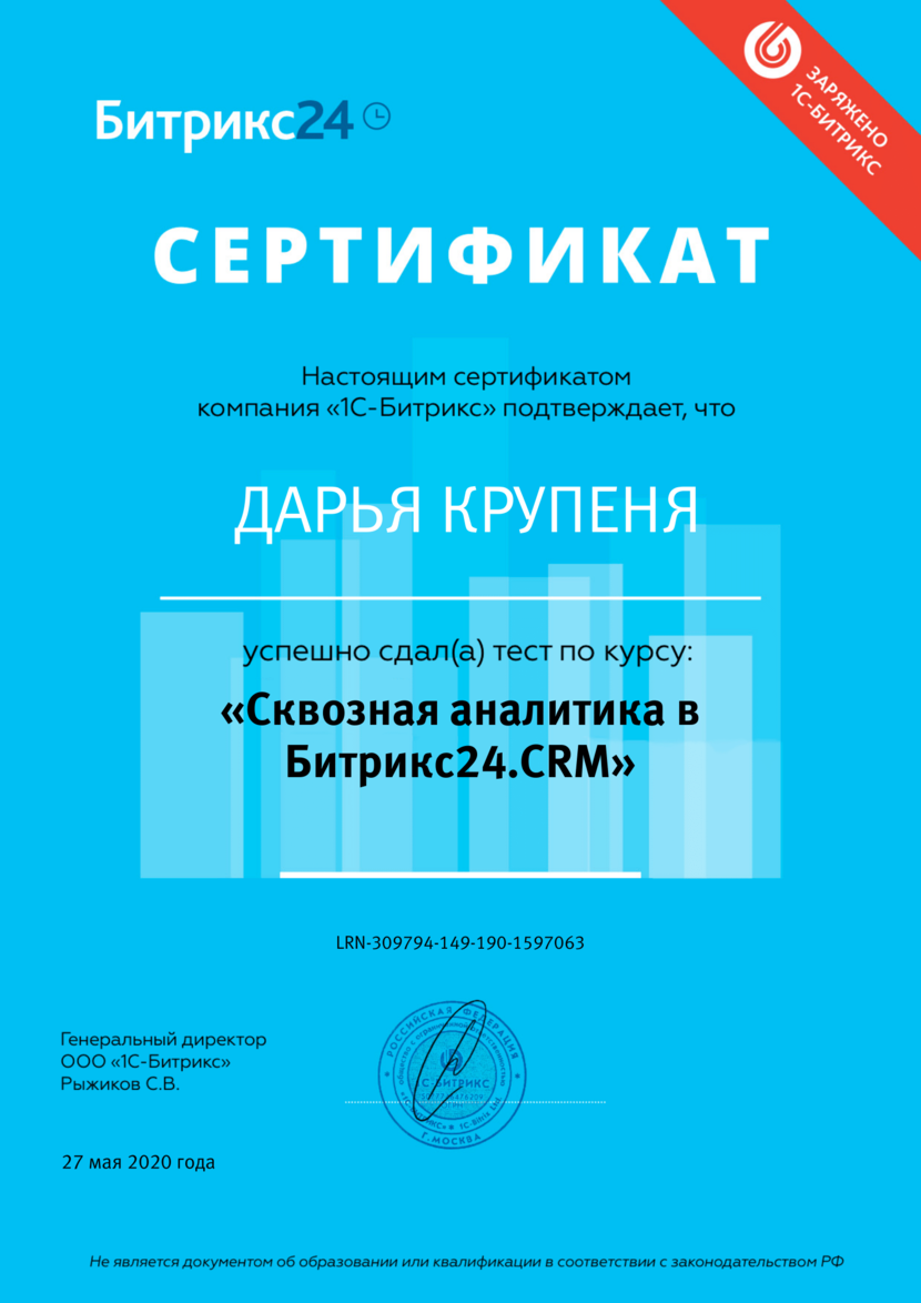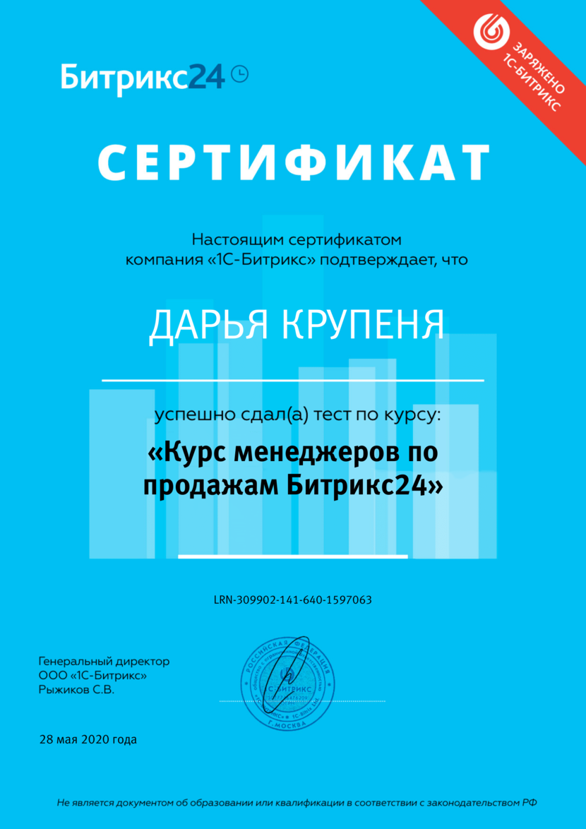 1C-Битрикс - "Курс Менеджеров по продажам Битрикс24", Крупеня Дарья