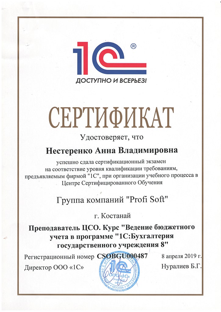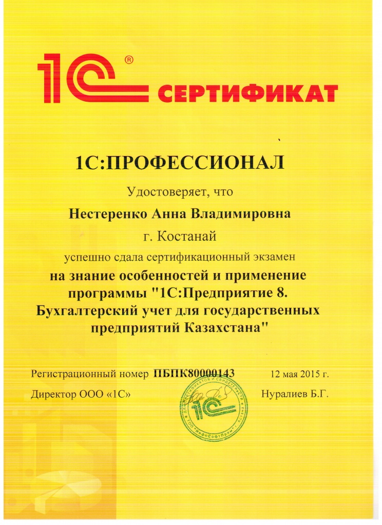 1С:Предприятие 8. Бухгалтерский учёт для государственных учреждений Казахстана, Нестеренко Анна