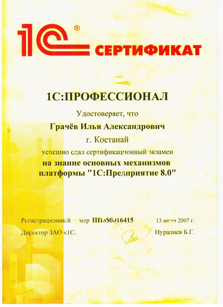 Платформа "1С:Предприятие 8.3", Грачёв Илья