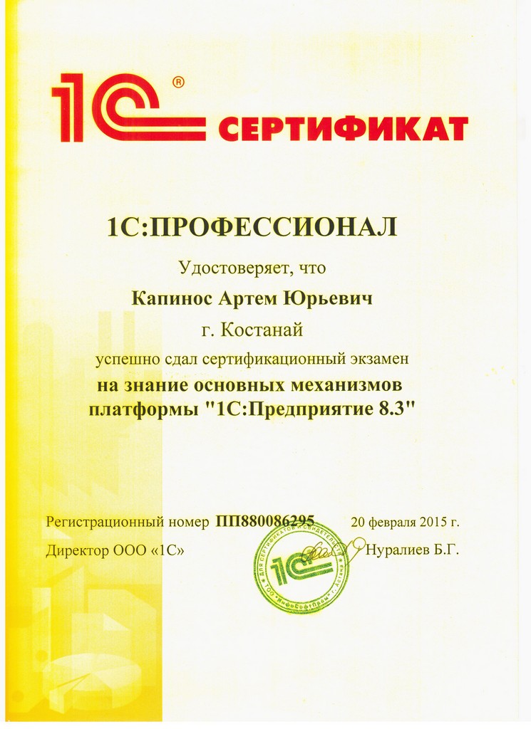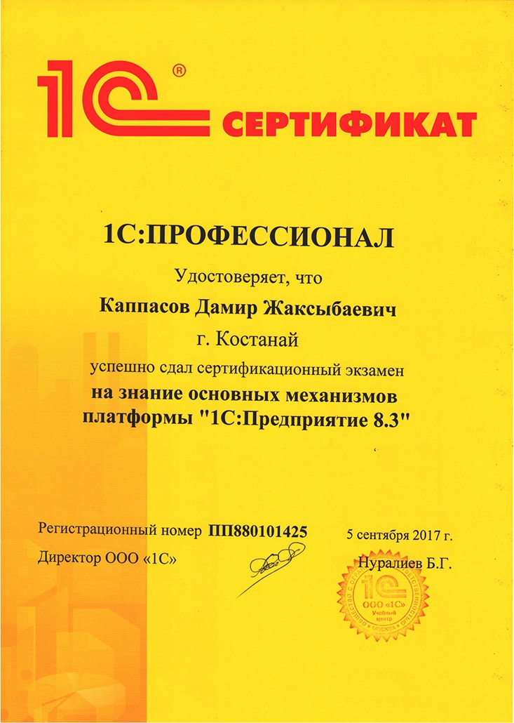 Платформа "1С:Предприятие 8.3", Каппасов Дамир