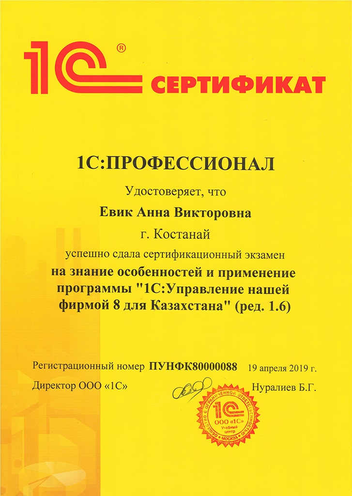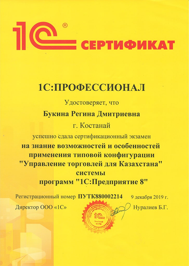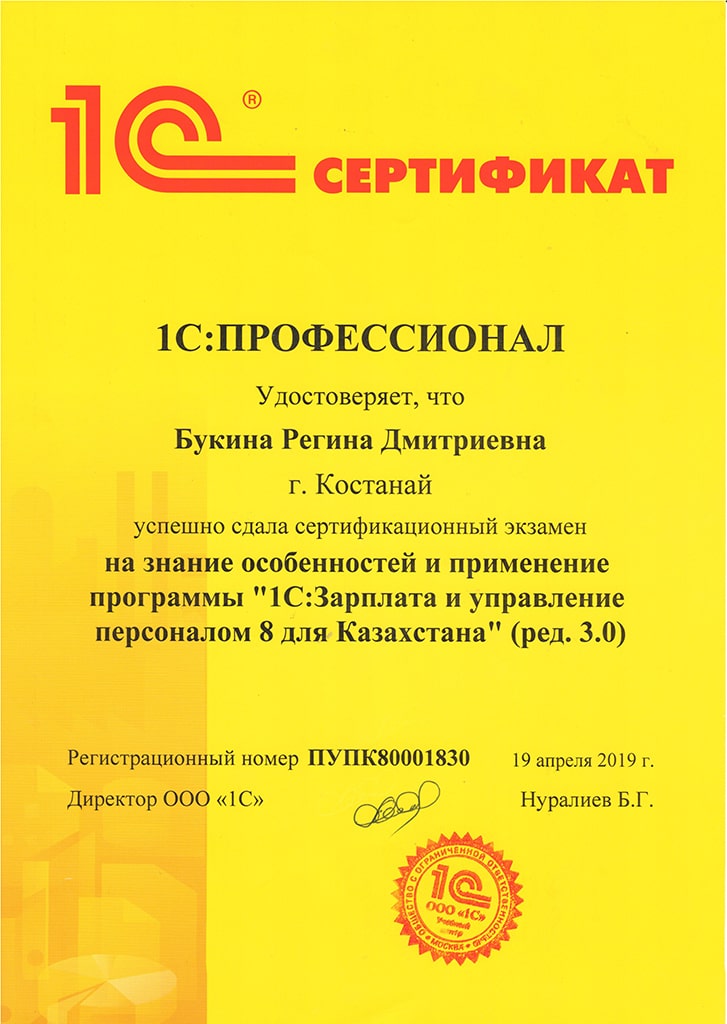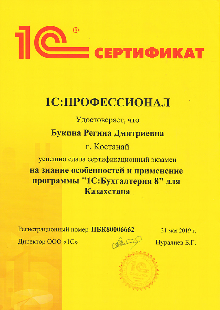 "1С:Бухгалтерия 8" для Казахстана, Букина Регина