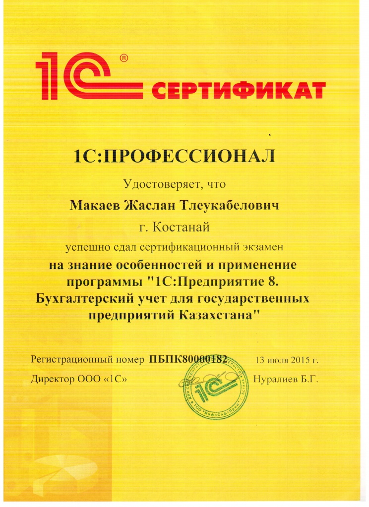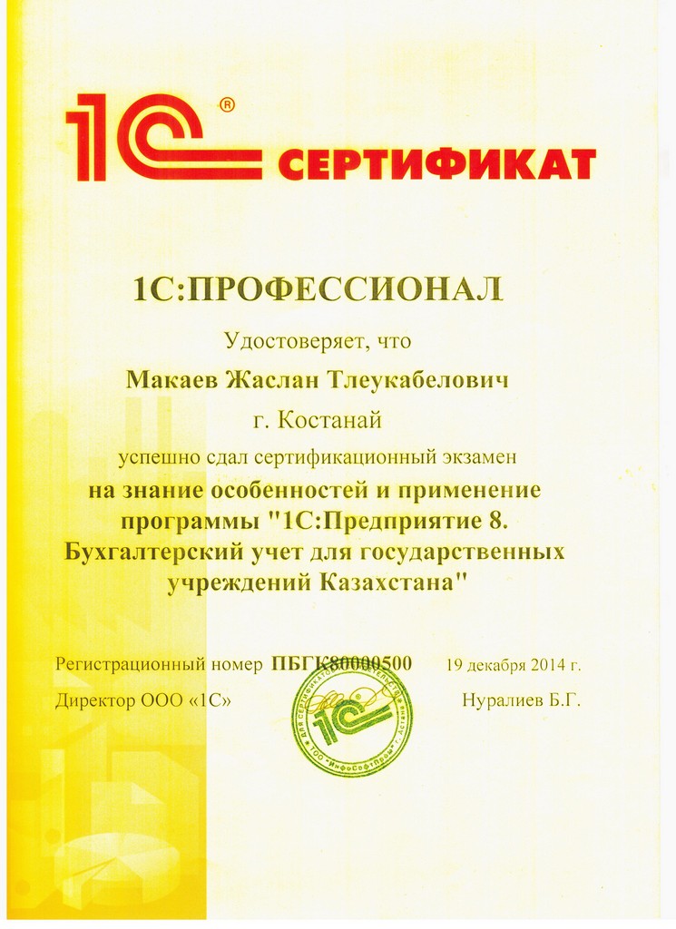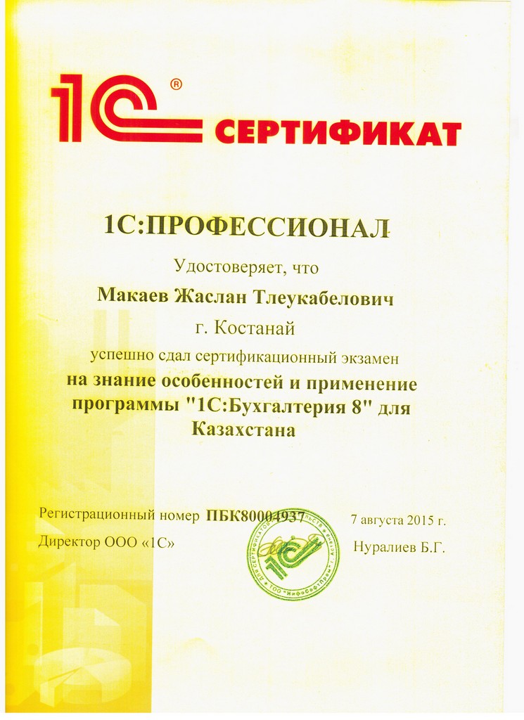 "1С:Бухгалтерия 8" для Казахстана, Макаев Жаслан