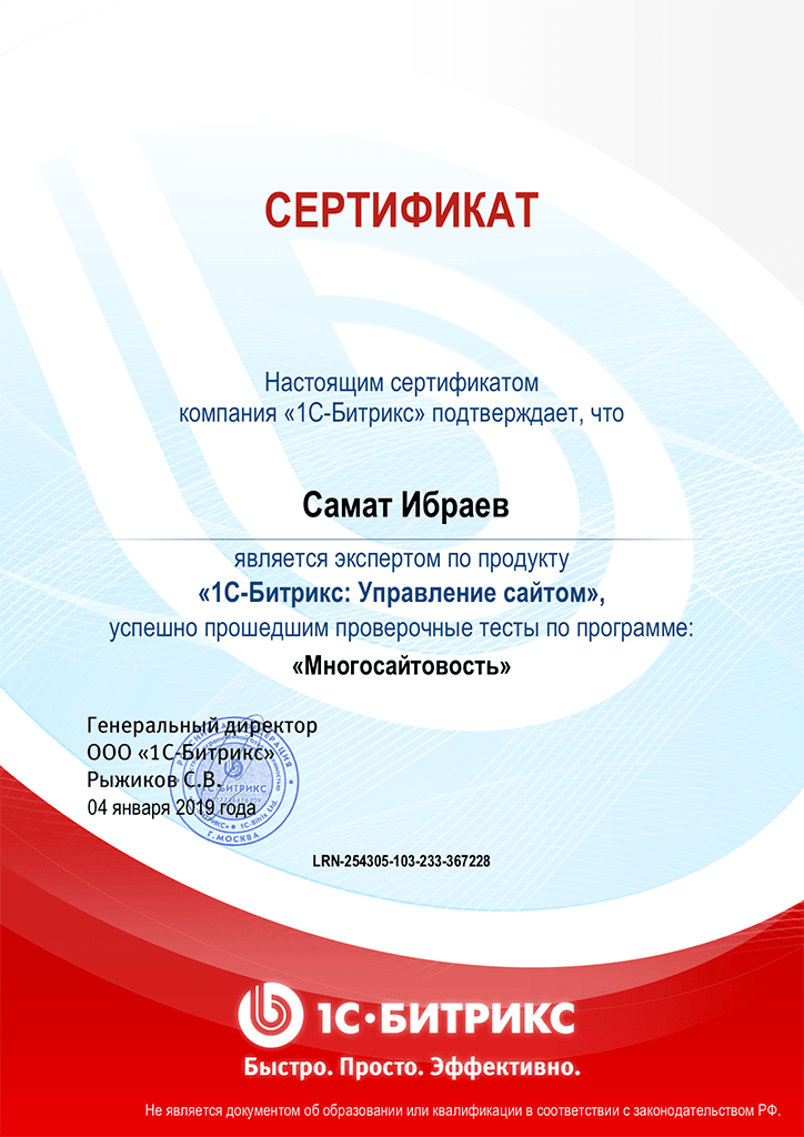 1С-Битрикс - "Администратор. Бизнес", Ибраев Самат