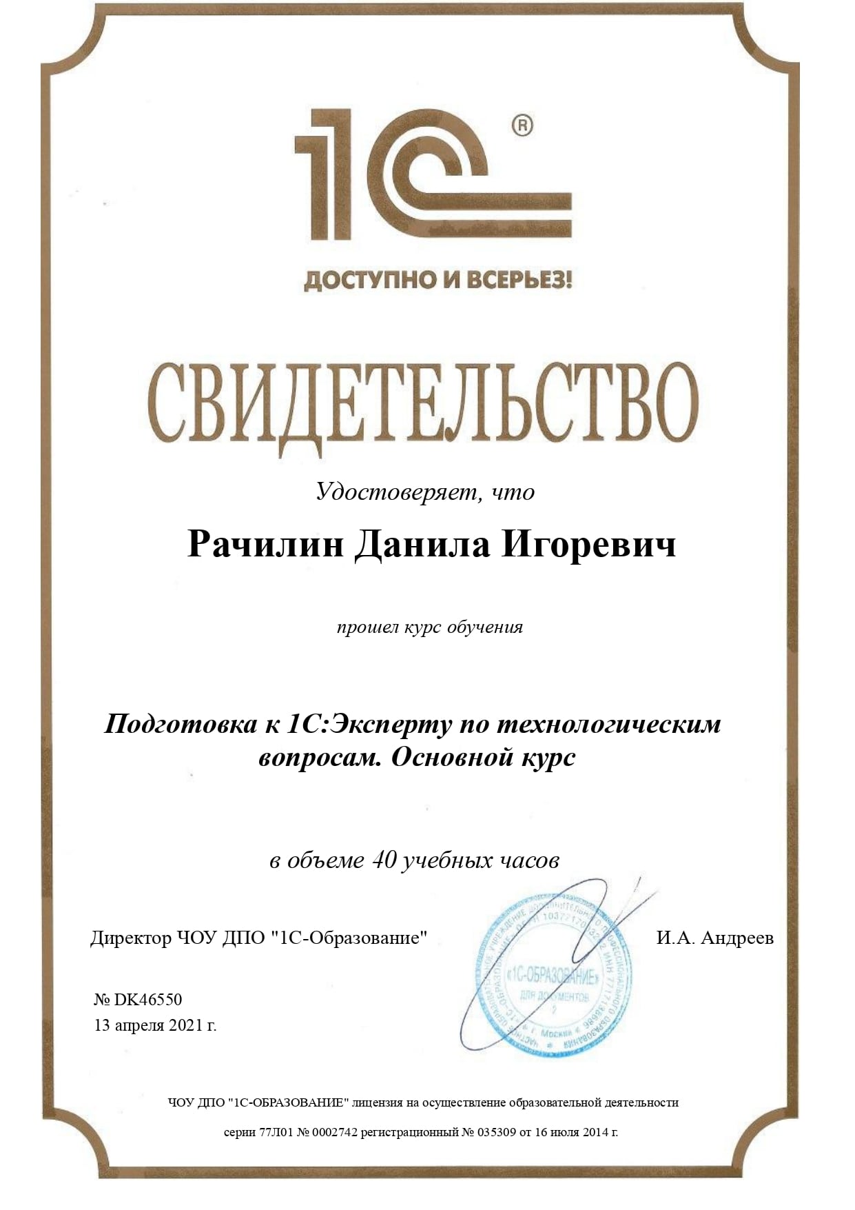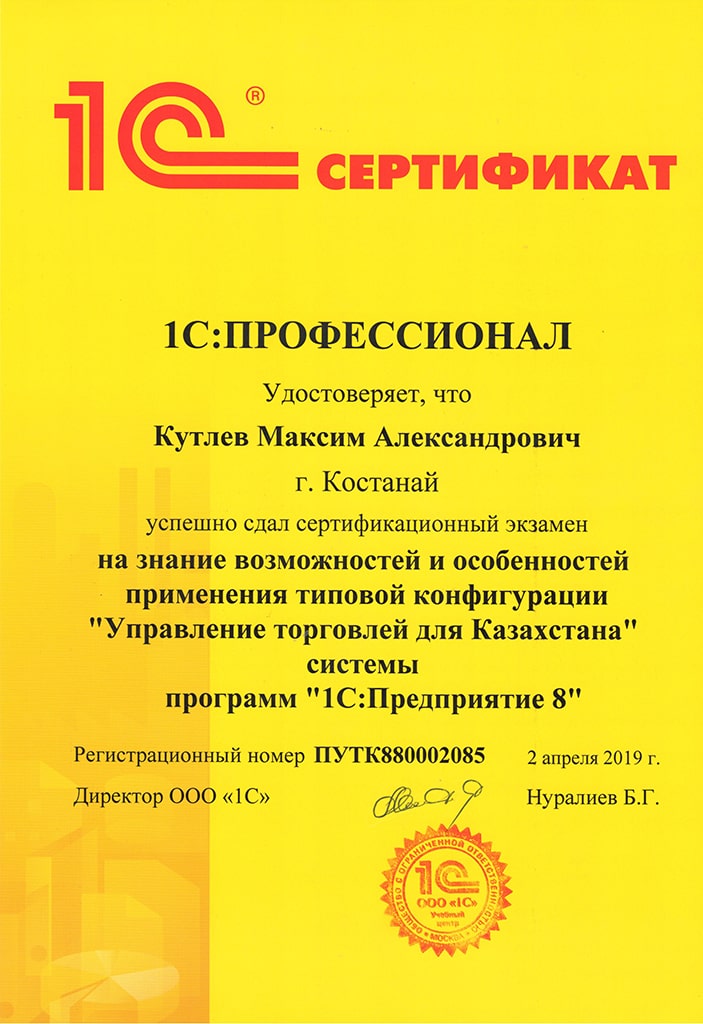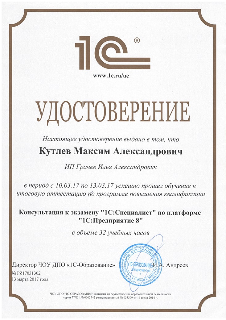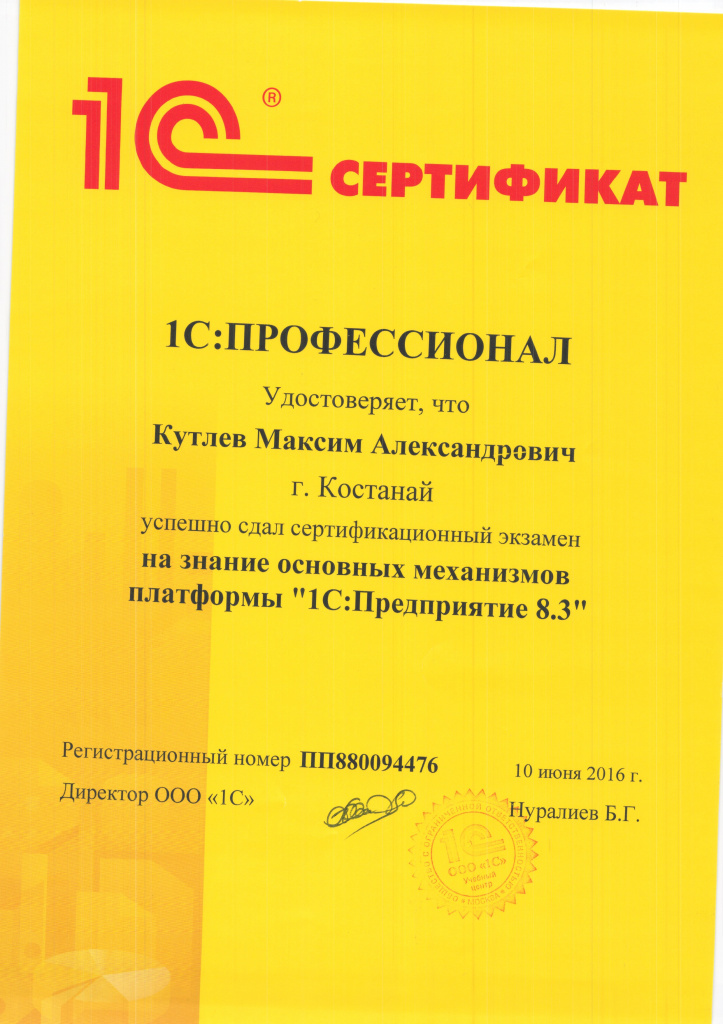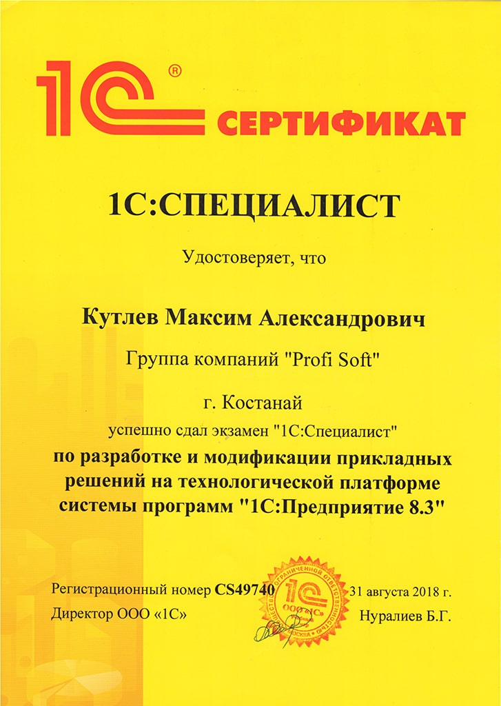 1С:Специалист, Кутлев Максим
