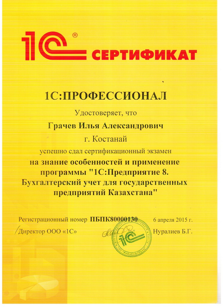 1С:Предприятие 8. Бухгалтерский учёт для государственных предприятий Казахстана, Грачёв Илья