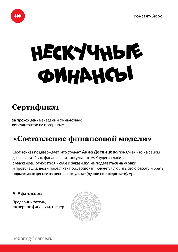 "Составление финансовой модели", Анна Детянцева