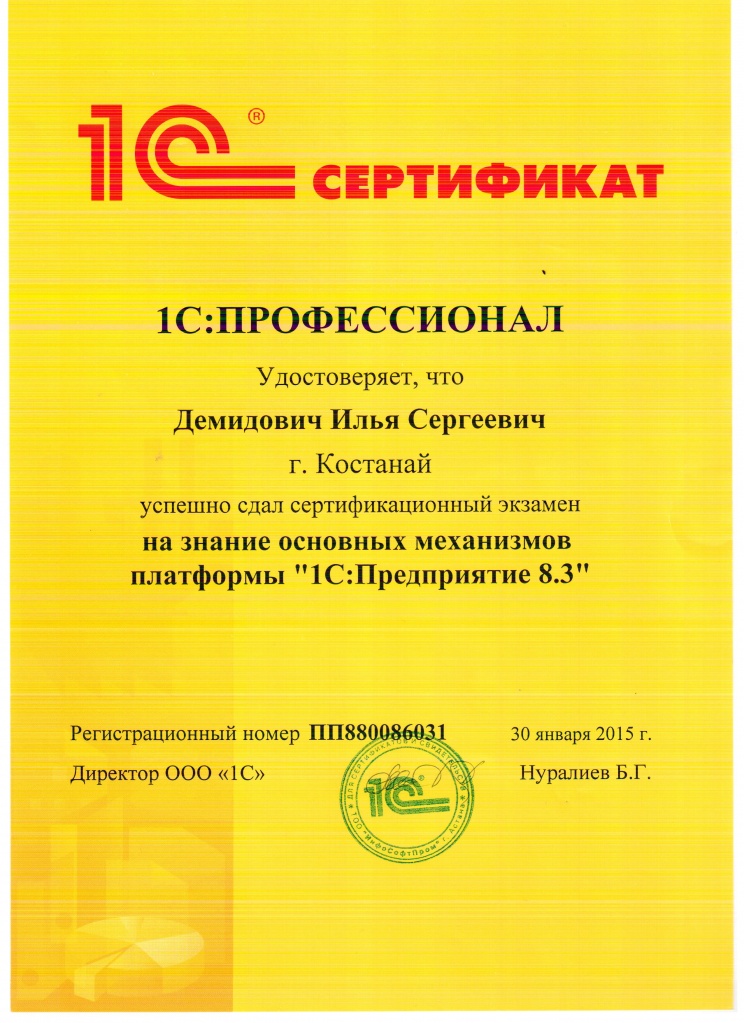 Платформа "1С:Предприятие 8.3", Демидович Илья