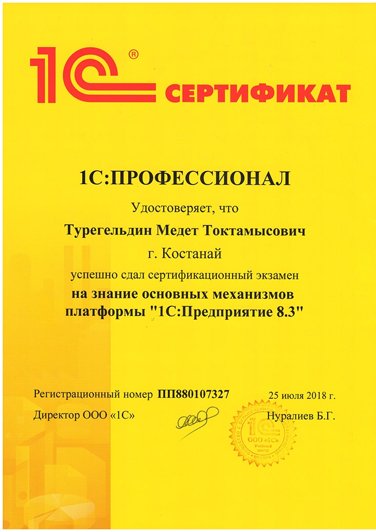 Платформа "1С:Предприятие 8.3", Турегельдин Медет