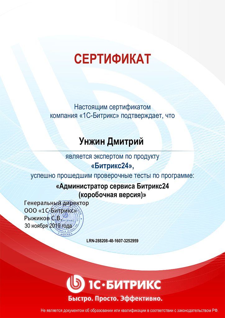 "Администратор сервиса Битрикс24 (коробочная версия)", Дмитрий Унжин