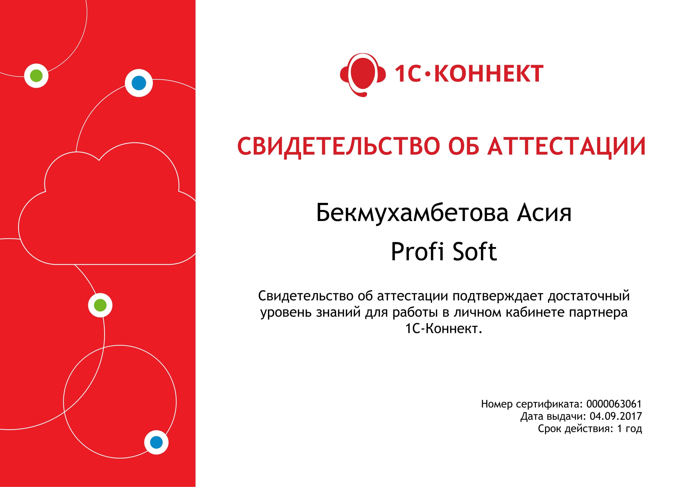 Личный кабинет партнера 1С-Коннект, Бекмухамбетова Асия