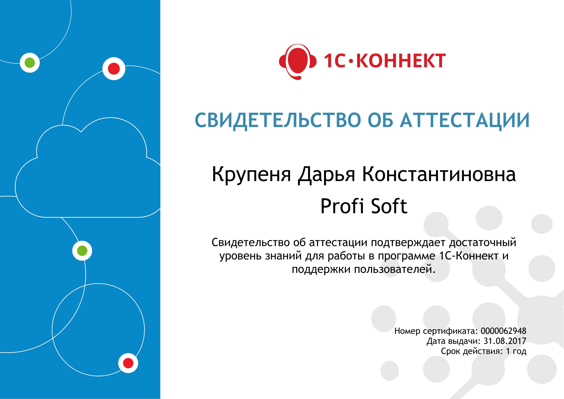 Работа в программе и поддержка пользователей 1С-Коннект, Крупеня Дарья