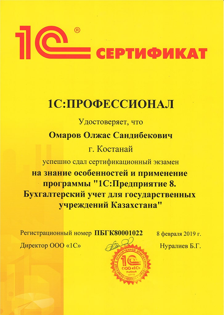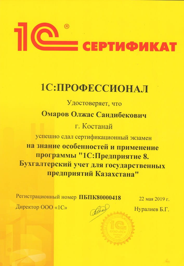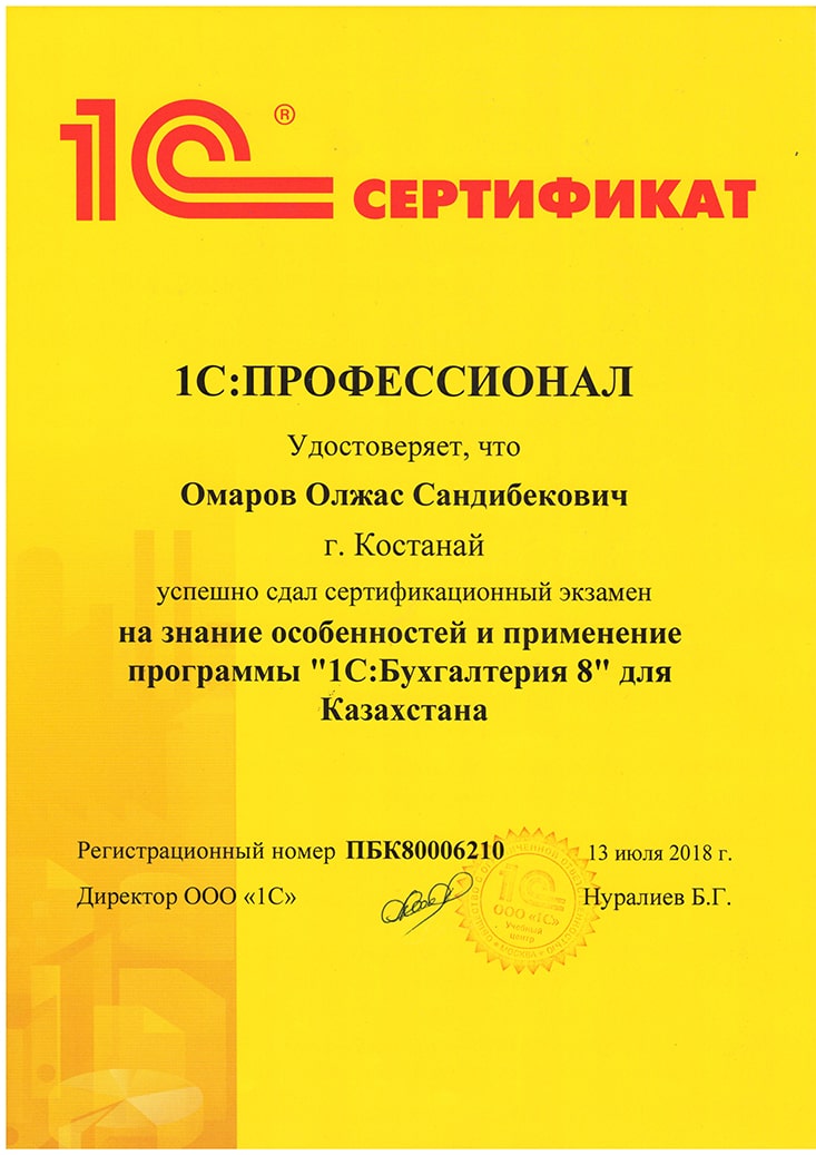 "1С:Бухгалтерия 8" для Казахстана, Омаров Олжас
