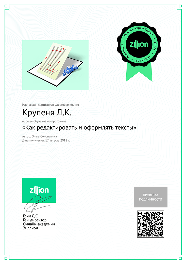"Как редактировать и оформлять тексты", Крупеня Дарья