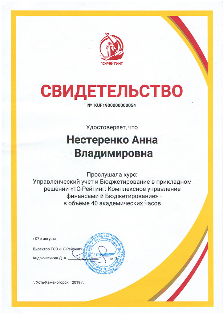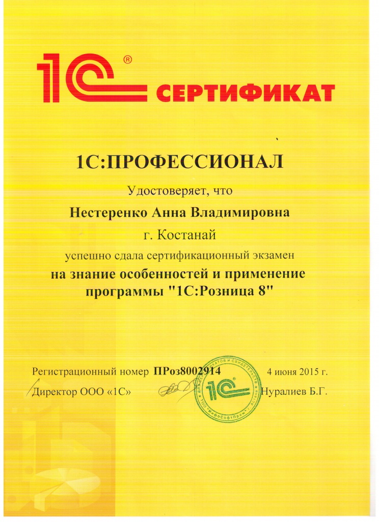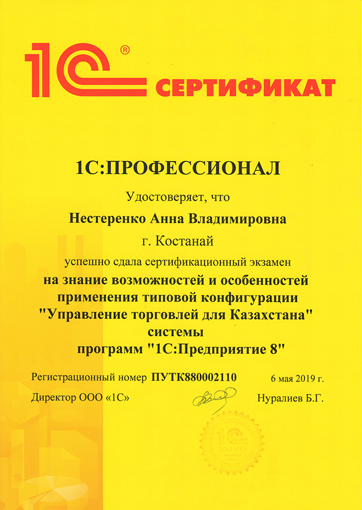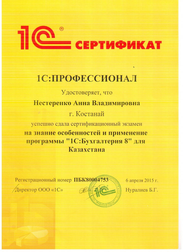 "1С:Бухгалтерия 8" для Казахстана, Нестеренко Анна