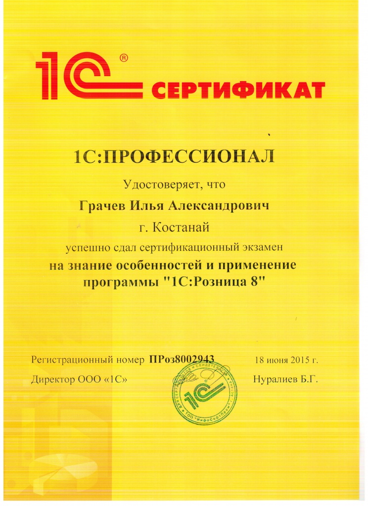 "1С:Розница 8", Грачёв Илья