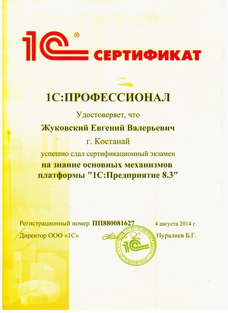 Платформа "1С:Предприятие 8.3", Жуковский Евгений