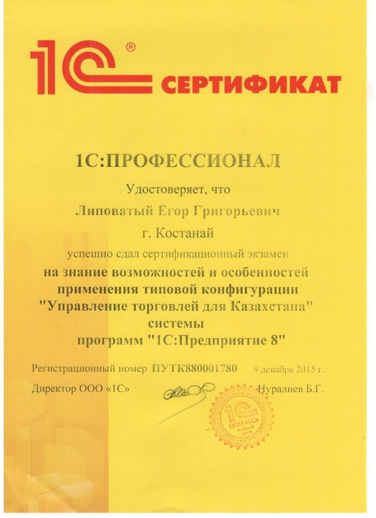 "Управление торговлей для Казахстана", Липоватый Егор