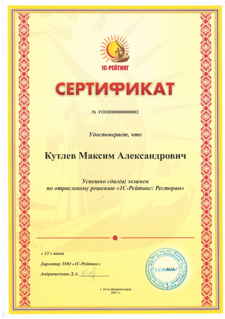 1С-Рейтинг: Ресторан, Кутлев Максим