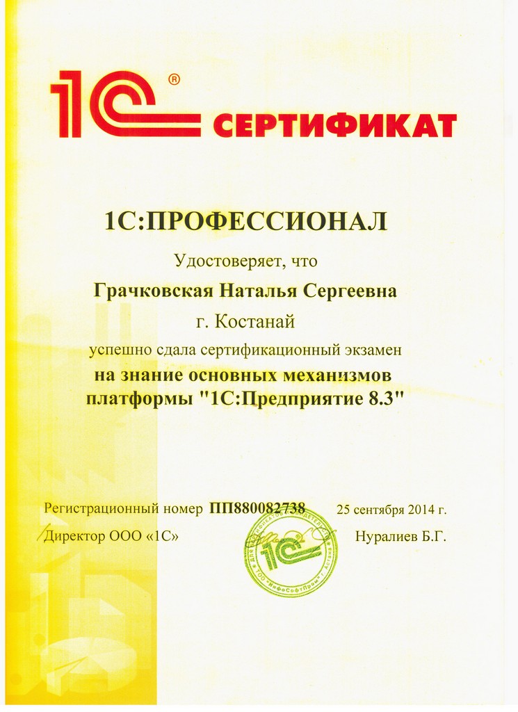 Платформа "1С:Предприятие 8.3", Грачковская Наталья