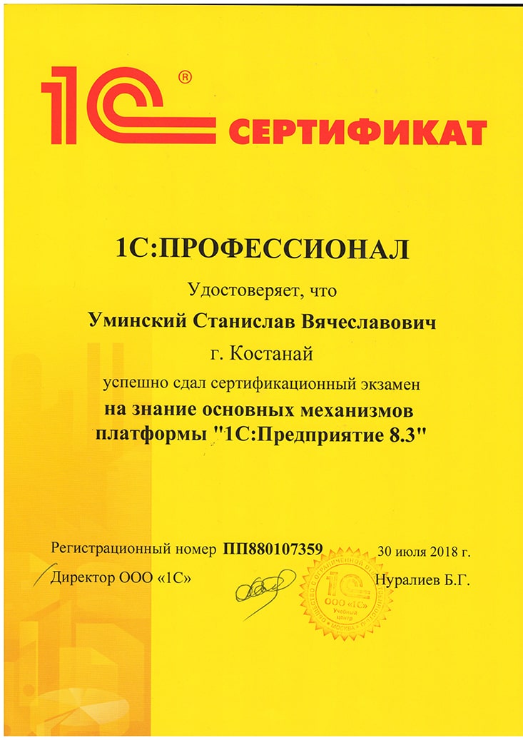 Платформа "1С:Предприятие 8.3", Уминский Станислав