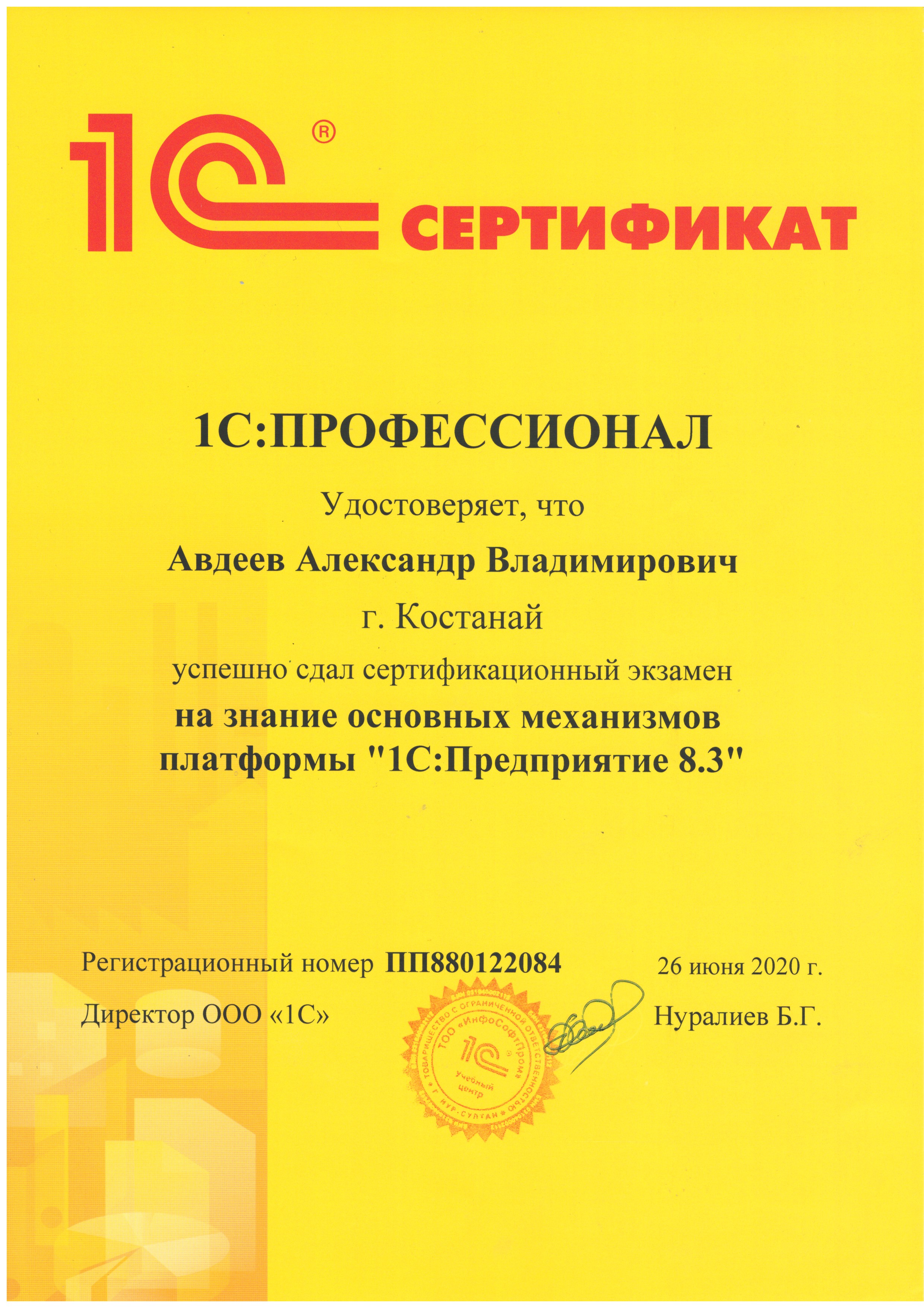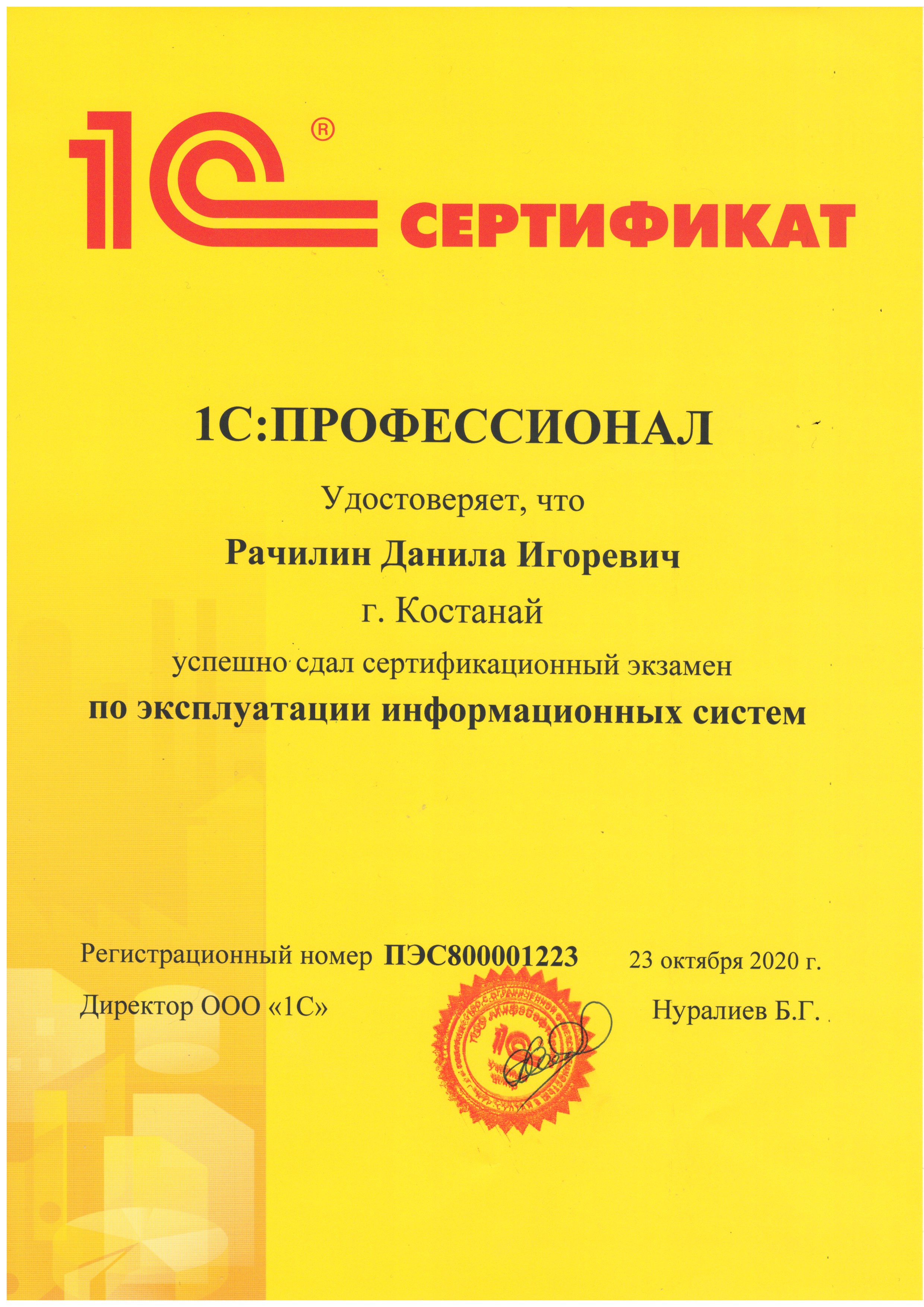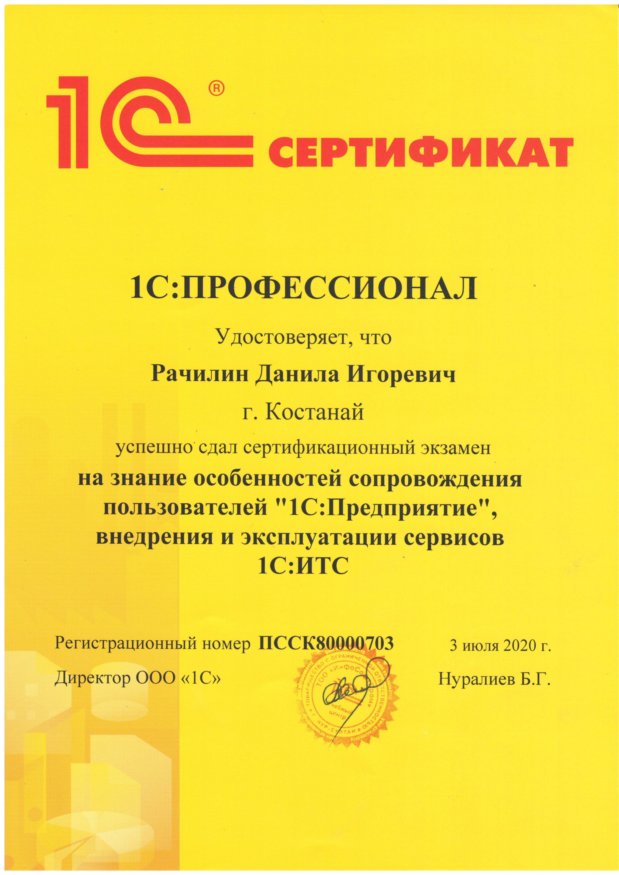 1С: Профессионал (на знание основных механизмов платформы "1С:Предприятие 8.3") - Рачилин Данила