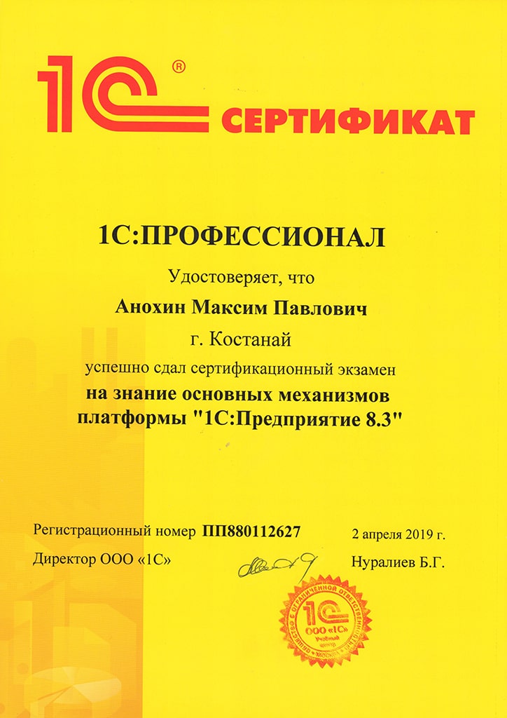 Платформа "1С:Предприятие 8.3", Анохин Максим