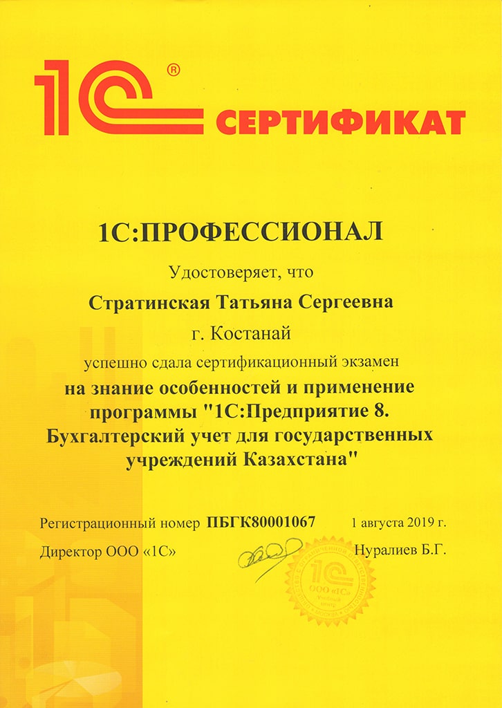 1С:Предприятие 8. Бухгалтерский учёт для государственных учреждений Казахстана, Стратинская Татьяна