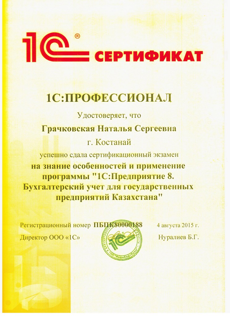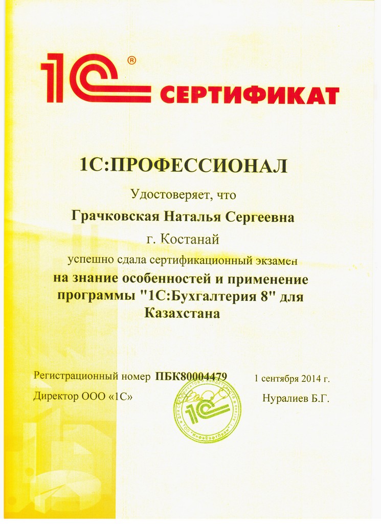 "1С:Бухгалтерия 8" для Казахстана, Грачковская Наталья