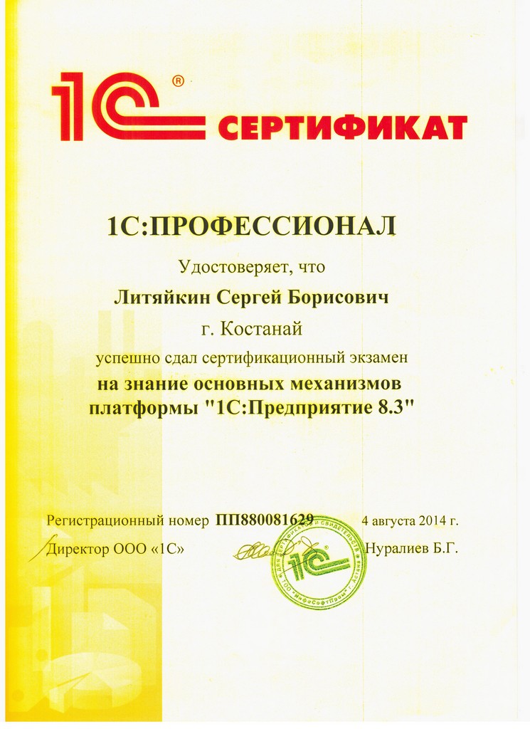 Платформа "1С:Предприятие 8.3", Литяйкин Сергей