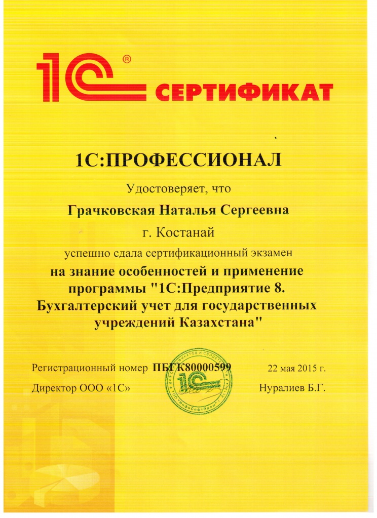 1С:Предприятие 8. Бухгалтерский учёт для государственных учреждений Казахстана, Грачковская Наталья