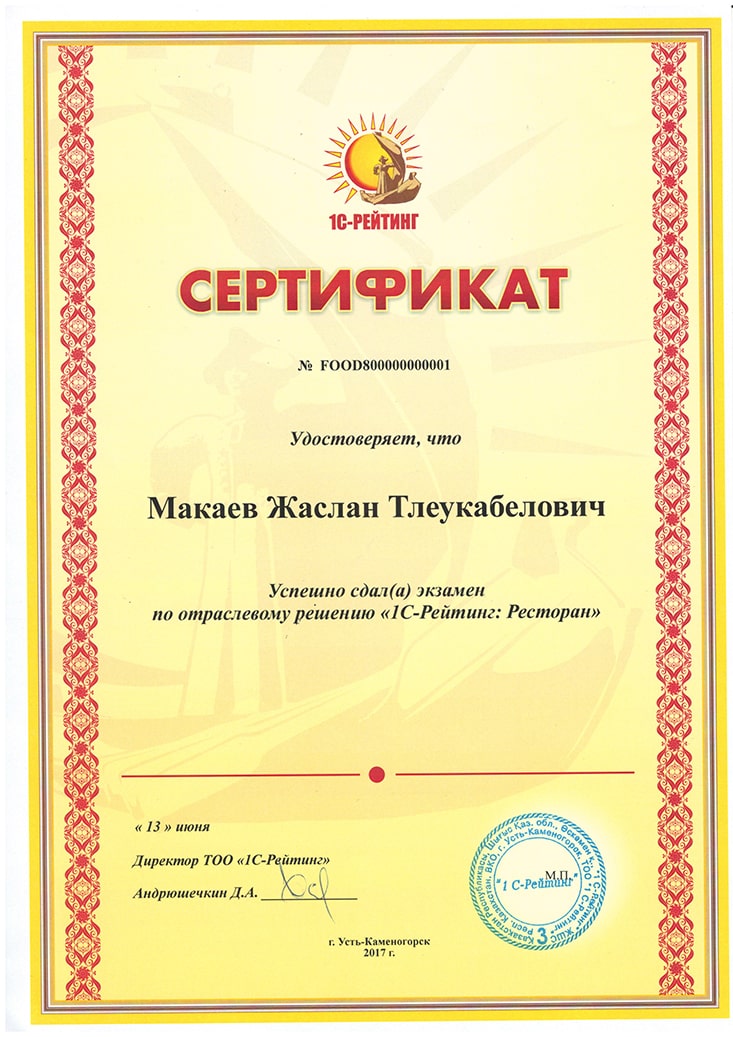 1С-Рейтинг: Ресторан, Макаев Жаслан