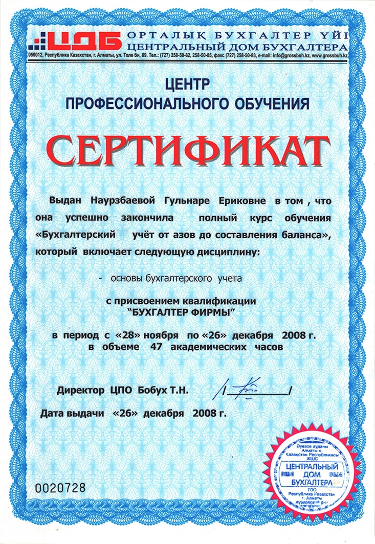 "Бухгалтер Фирмы", Наурзбаева Гульнура