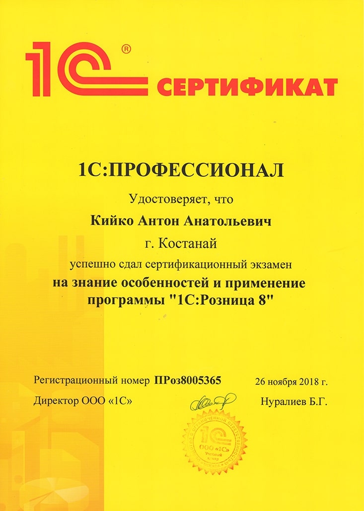 "1С:Розница 8", Кийко Антон