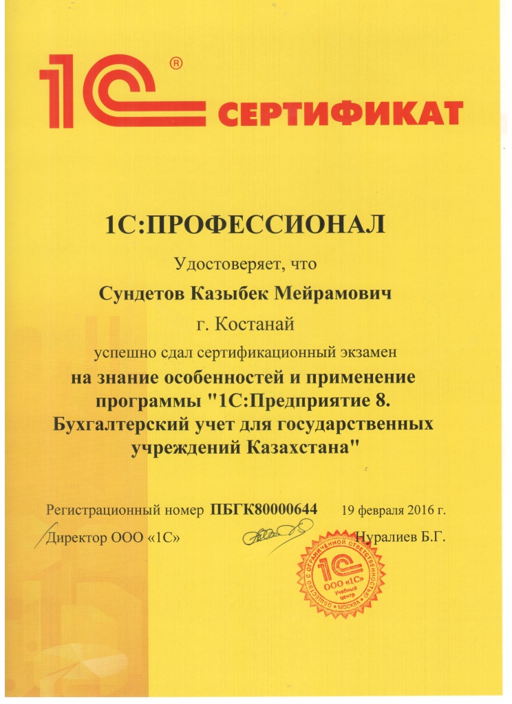 1С:Предприятие 8. Бухгалтерский учёт для государственных учреждений Казахстана, Сундетов Казыбек