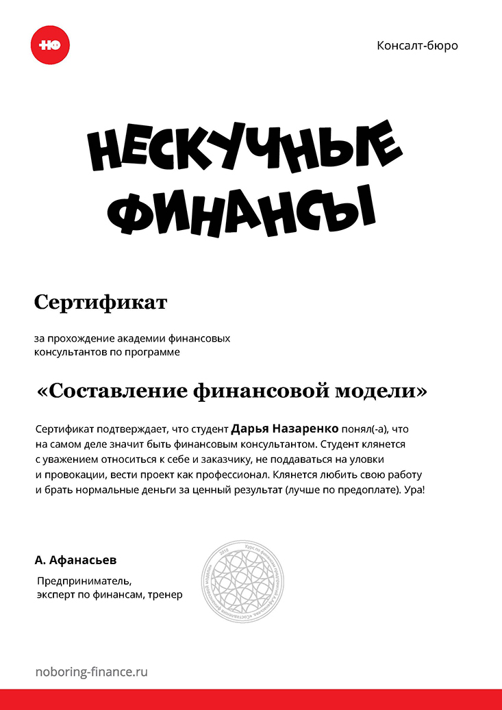 "Составление финансовой модели", Назаренко Дарья