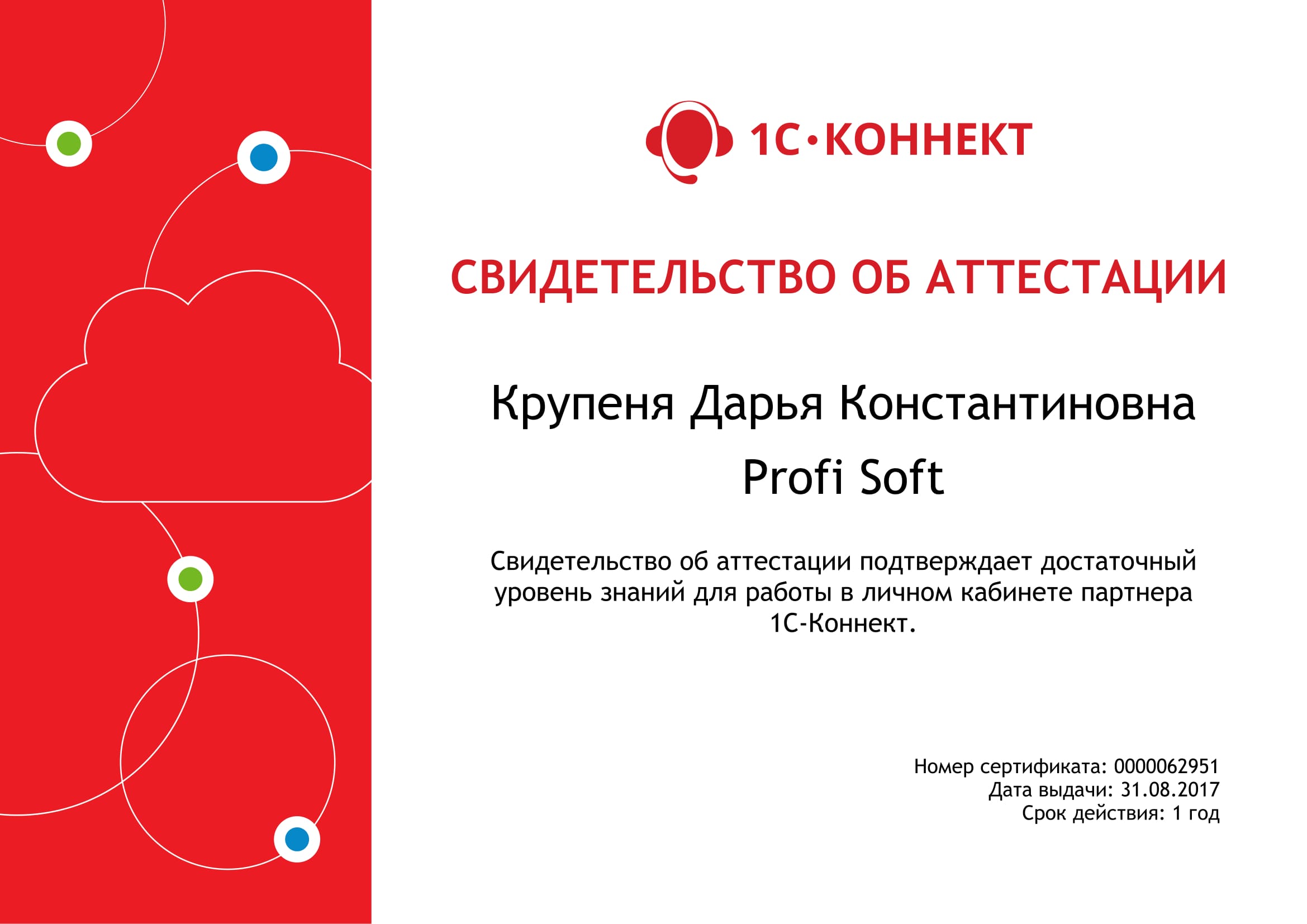 Личный кабинет партнера 1С-Коннект, Крупеня Дарья