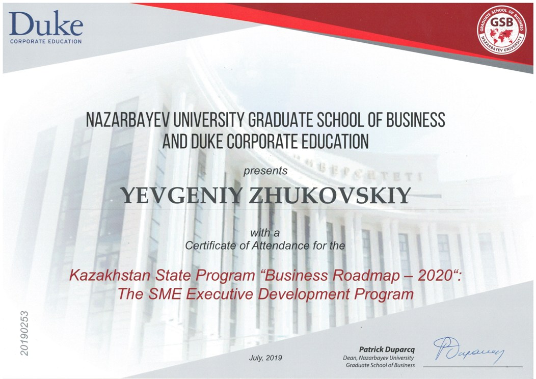 Business Roadmap 2020, Жуковский Евгений