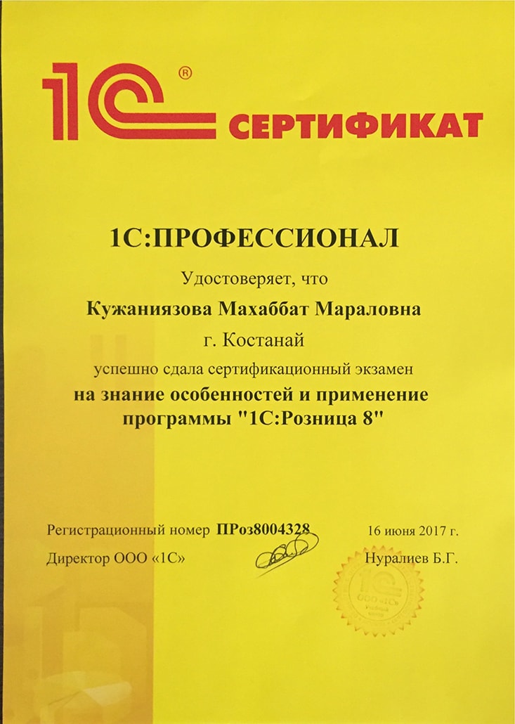 "1С:Розница 8", Кужаниязова Махаббат