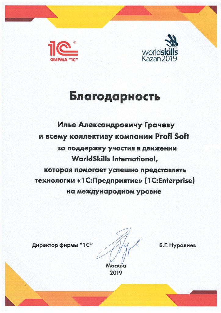 За поддержку участия в движении WorldSkills International, Грачёв Илья