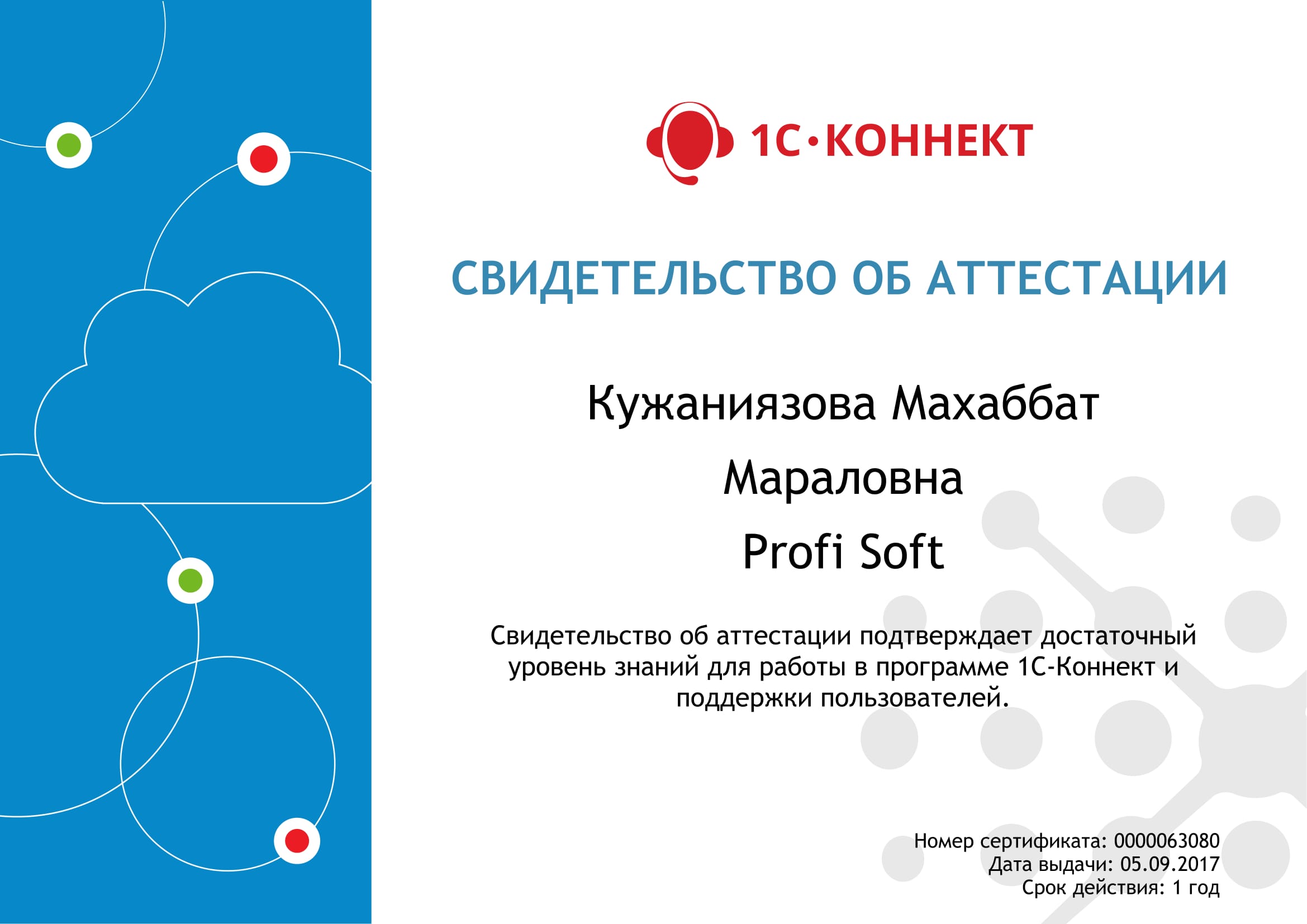 Работа в программе и поддержка пользователей 1С-Коннект, Кужаниязова Махаббат