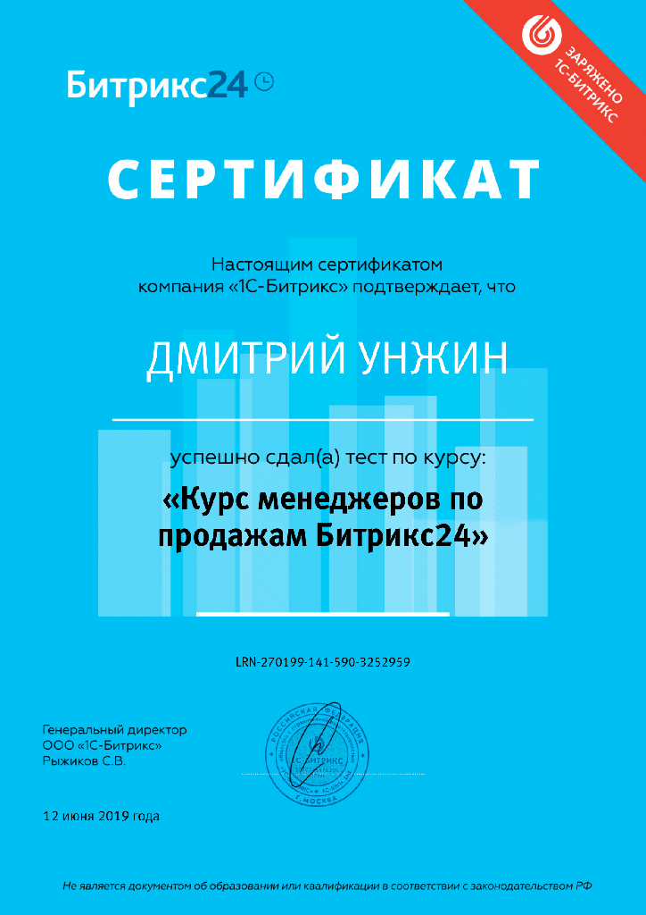 "Курс менеджеров по продажам Битрикс24", Унжин Дмитрий