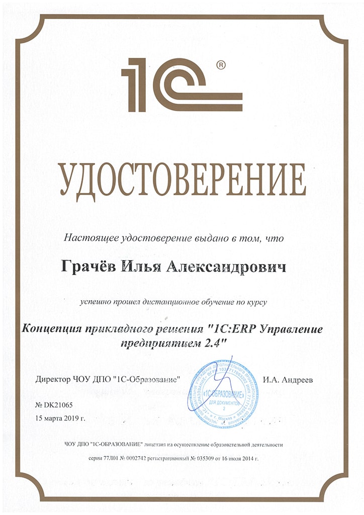 "1С: ERP Управление предприятием 2.4", Грачёв Илья