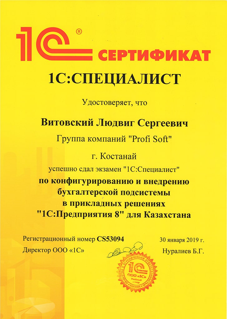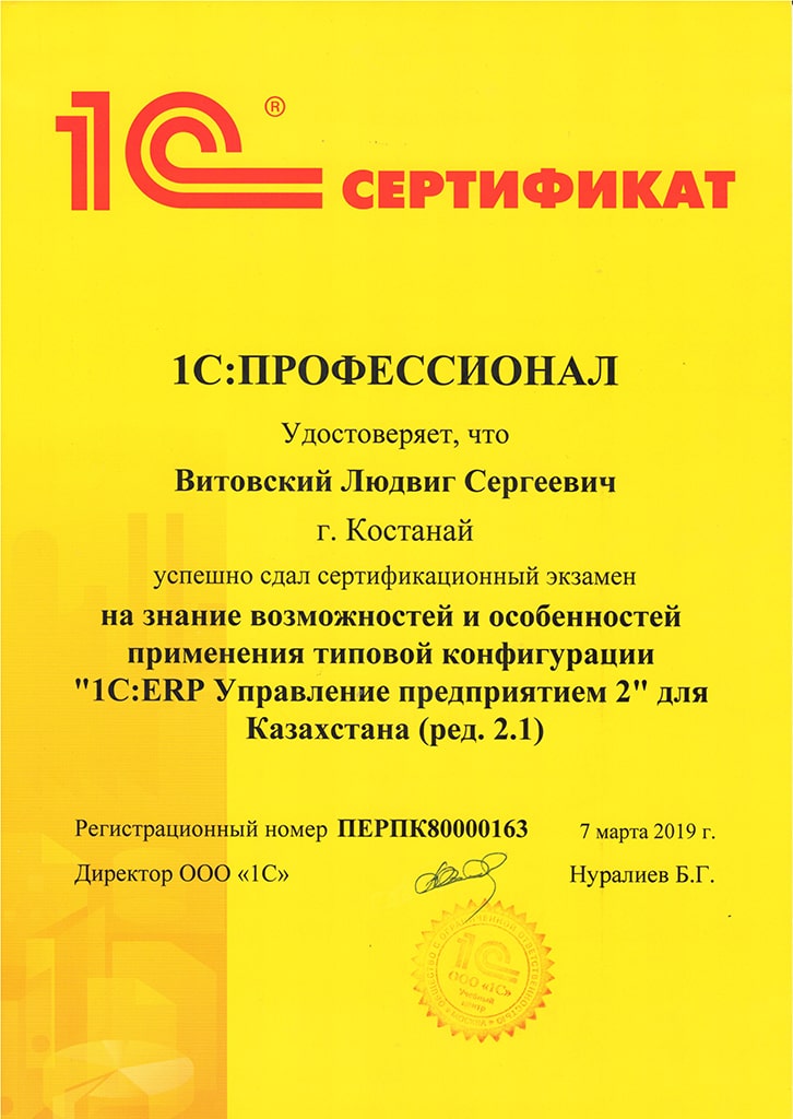 "1С: ERP Управление предприятием 2" для Казахстана, Витовский Людвиг